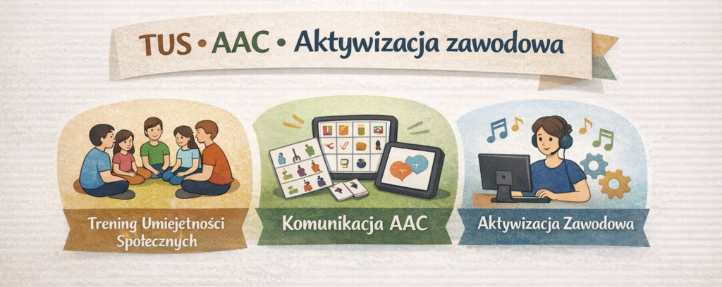 Pracujemy w oparciu o sprawdzone metody, stale rozwijając kompetencje w obszarze komunikacji AAC, treningu umiejętności społecznych i aktywizacji zawodowej.